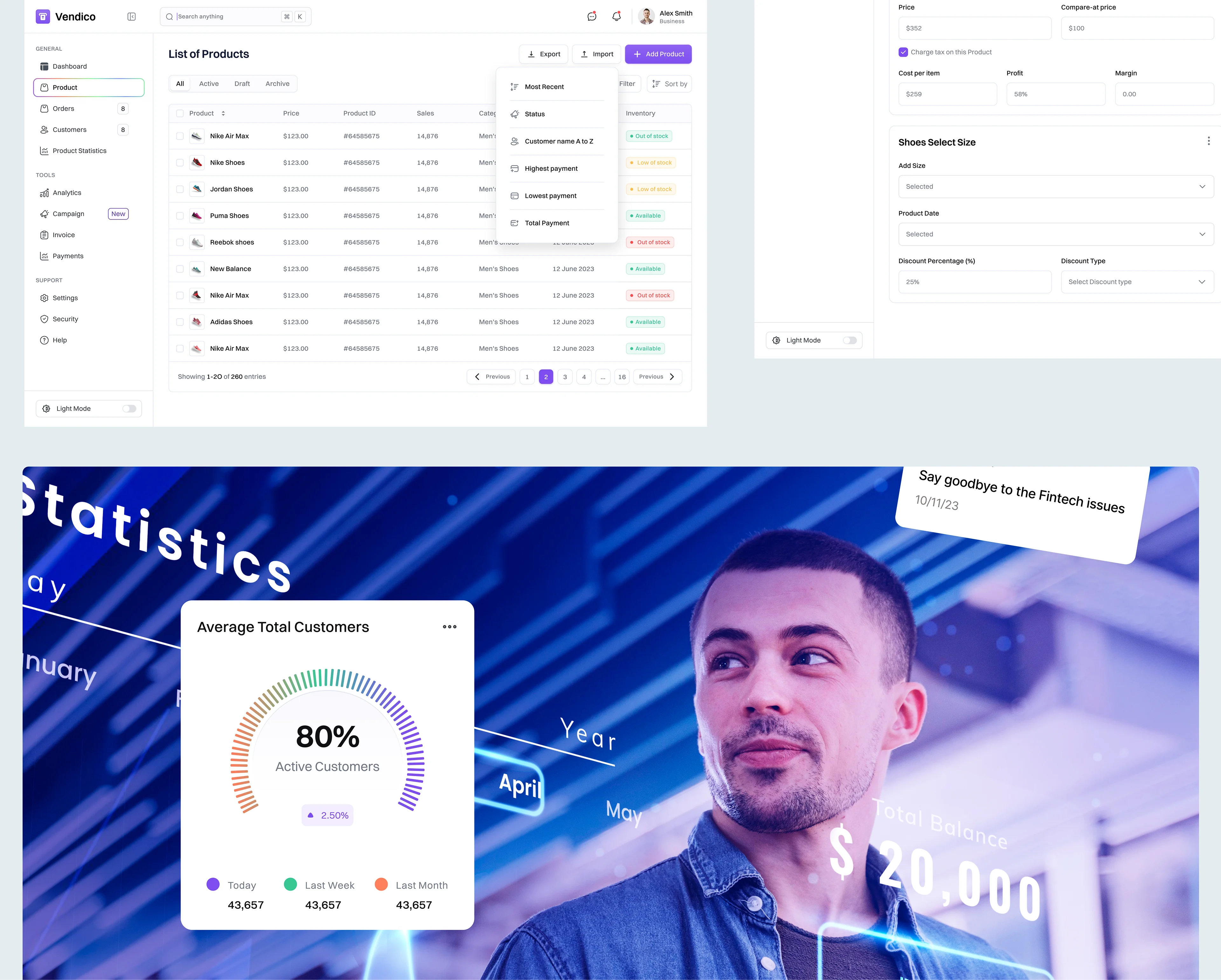 The project aimed to create a sales management tool that was exceptionally user-friendly, with clear visuals and intuitive navigation that any employee could use comfortably. The focus was on delivering a clean, modern UI/UX with enhanced data visualization to provide a seamless and enjoyable experience for online business owners and their teams.
